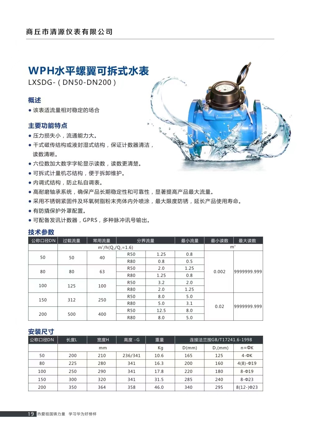 水平螺翼式可拆式水表