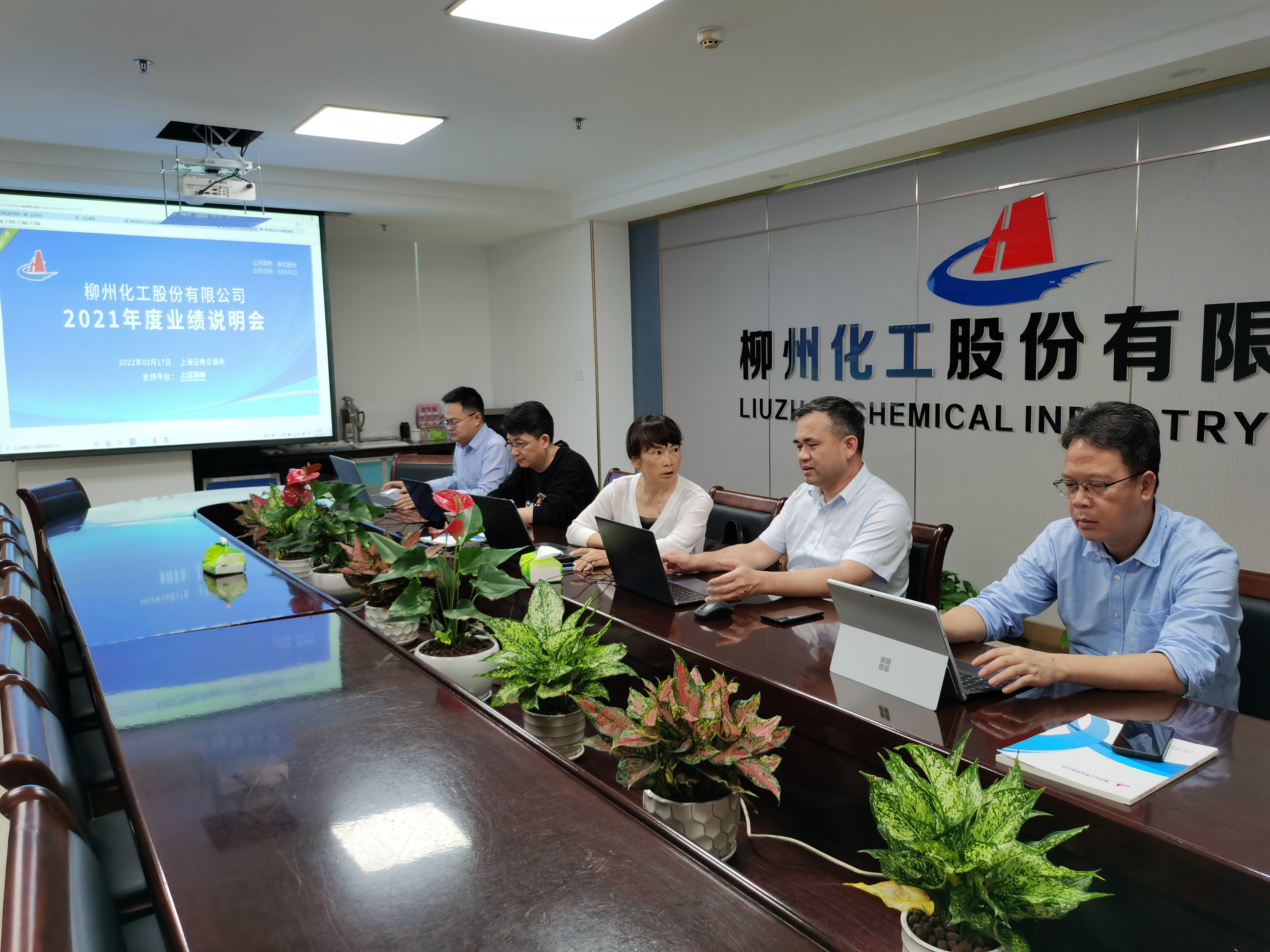 2022年3月17日下午,柳州化工股份有限公司2021年度業(yè)績(jī)說(shuō)明會(huì)在上海證券交易所上證路演中心以網(wǎng)絡(luò)文字互動(dòng)形式召開。公司董事長(zhǎng)、總經(jīng)理陸勝云,獨(dú)立董事吳綠秋,財(cái)務(wù)總監(jiān)黃吉忠以及董事會(huì)秘書龍立萍出席本次說(shuō)明會(huì)。