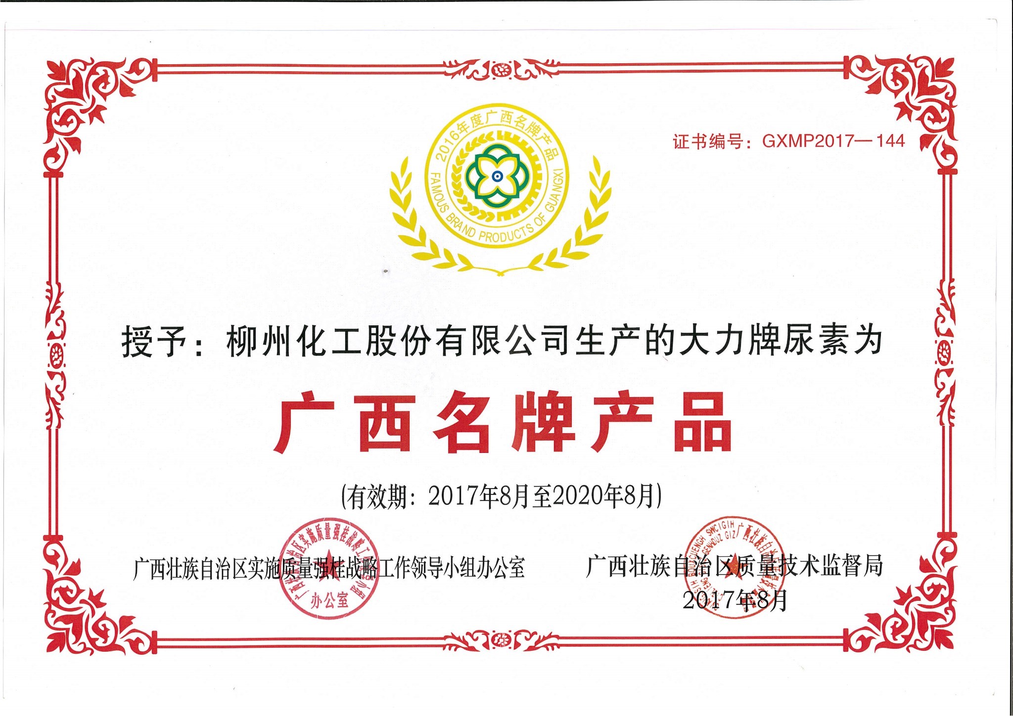 尿素產(chǎn)品2017年被評(píng)為“廣西名牌產(chǎn)品”